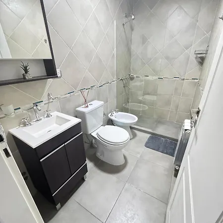 Das Apartment Apart Cumbres Del Sur 2B verfügt über ein Bidet und eine getrennte Toilette für Ihren Komfort. Das Badezimmer ist mit einem Haartrockner und Handtüchern ausgestattet.